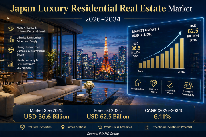 According to IMARC Group's latest research publication, the size of the Japan luxury residential real estate market reached USD 36.6 Billion in 2025. Looking ahead, the market size is projected to reach USD 62.5 Billion by 2034, exhibiting a growth rate (CAGR) of 6.11% during 2026-2034.