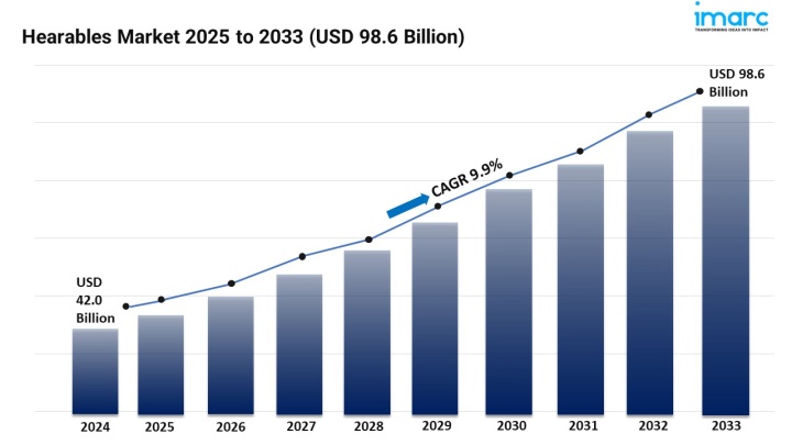 The Hearables Market is experiencing rapid expansion, driven by Growing Demand for Wireless Audio Devices with Enhanced Sound Quality, Health and Wellness Integration in Consumer Electronics, and Advancements in Noise Cancellation Technology. According to IMARC Group's latest research publication, "Hearables Market: Global Industry Trends, Share, Size, Growth, Opportunity and Forecast 2025--2033", The global hearables market size reached USD 46.2 Billion in 2025. Looking forward, IMARC Group expects the market to reach USD 104.0 Billion by 2034, exhibiting a growth rate (CAGR) of 9.40% during 2026-2034.