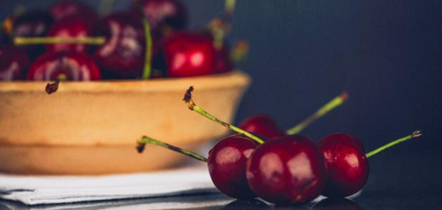 A Greek yogurt and cherry smoothie with a touch of vanilla extract