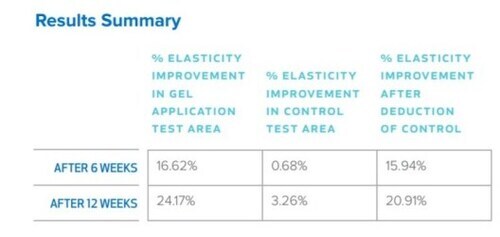 Throughout the 12-week evaluation subjects demonstrated significant progressive improvements (up to 24%) in skin elasticity.