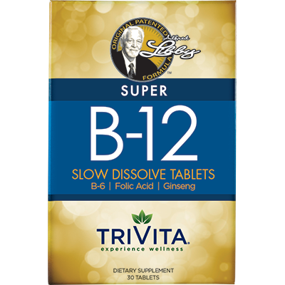 Original B-12 contains B-12, B-6 and folic acid. Super B-12 has 3 times as much B-12 as the Original B-12 plus ginseng.