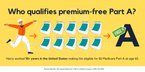 If you have worked at least 40 quarters in the United States, this is you. So, it doesn’t cost you anything to add Part A at age 65. If you have an inpatient hospital stay, that Part A coverage may help to reduce your spending under your group health plan.