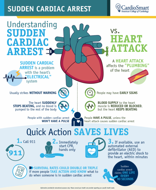 Sudden cardiac arrest should not be confused with a heart attack.