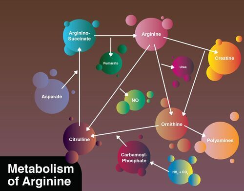 Another pathway of arginine breakdown results in the production of creatine. Creatine plays an important role in energy metabolism in muscle during exercise. Finally, some of the ornithine resulting from arginine can then be converted to polyamines.