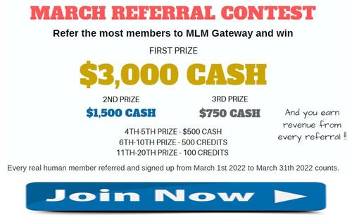 Fellow entrepreneurs, online and Offline Marketers, this is March, and a new Contest is open at MLM Gateway. MLM Gateway launches a Referral Contest every month. This MLM Monthly Referral Contest is about helping you build your business the easy and right way, and in the process, earn money prizes, Traffic packages and much more.