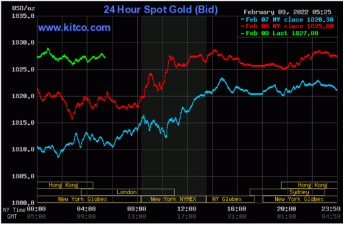 Gold has had respectable gains since January 31 in light of strong headwinds from rising yields in U.S. Treasuries and the Federal Reserve’s anticipated tightening of their monetary policy. As of 4:40 PM EST gold futures basis, the most active April contract is up $5.10, or 0.28%, and fixed at $1826.90. Since the beginning of last week, gold has risen from a low of $1786 to its current price gaining approximately $41.00. Gold’s value has increased by 2.29% in the last seven trading sessions. This in light of a tightening of the Federal Reserve’s monetary policy and rising Treasury yields