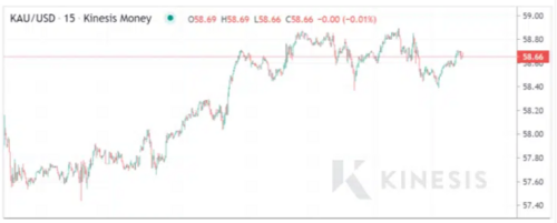 Gold Price ($/g) - 15 mins - from Kinesis Exchange