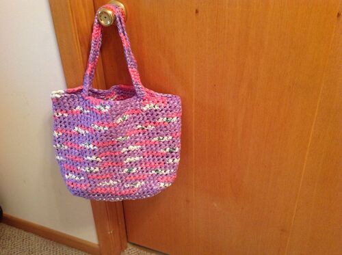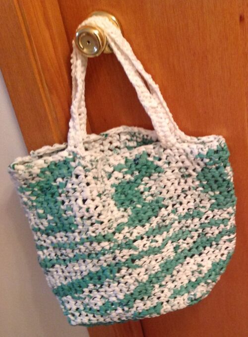 These are some of the Shopping Totes that I make from the Plastic Bags that you get at the stores when you shop. By making these from Plarn, that is what it is called by Recyling the plastic bags, I am also Reducing the waste going into Landfills and I am Reusing the bags. I make the Totes different sizes and colors depending on what the person would like. I also make the mats for multi use in your home, such as for pets and door mats going in and out of your home etc. and Sleeping Mats for the Homeless.