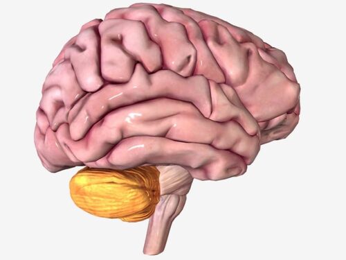 the cerebellum, which is located at the back of the brain and which is deeply involved in regulating movement, motor learning, and maintaining equilibrium