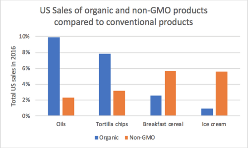 CAST reported that US premiums for “non-GMO products ranged from 9.8% to 61.8% and premiums for organic, which is implicitly non-GMO, ranged from 13.8% to 91%.”