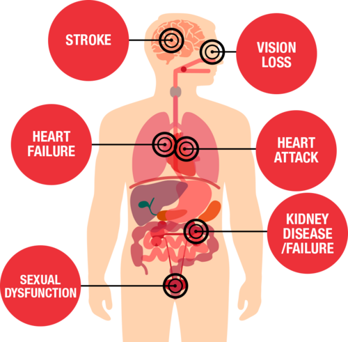 High blood pressure can affect your health in four main ways: