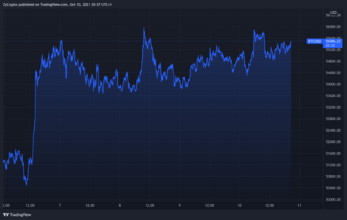 October, the 4th quarter of the year, is giving Bitcoiners multiple reasons to stay bullish. To start with, Bitcoin bulls seem to be leaving no room for delay as they have began to warm up immediately after the new month hit. The bulls are already attempting $60,000 as analysts noted, after successfully correcting September’s losses. At a press time price of $55,182, Bitcoin is well-positioned to retest its $64k all-time high.