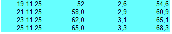 Dez. 50 – Jan. 100 – Feb. 200 – März 400 – Apr. 800 - Mai 1.600 – Juni 3.200 – Juli 6.400 – Aug. 12.800 – Sept. 25.000 – Okt. 50.000 – Nov. 100.000 – Dez. 200.000