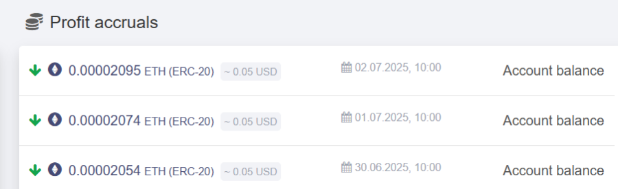 Once capitalized, the income is automatically added to the client's deposit and becomes available to withdrawal or further income generation.