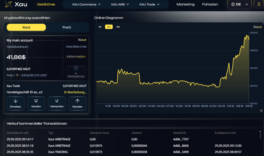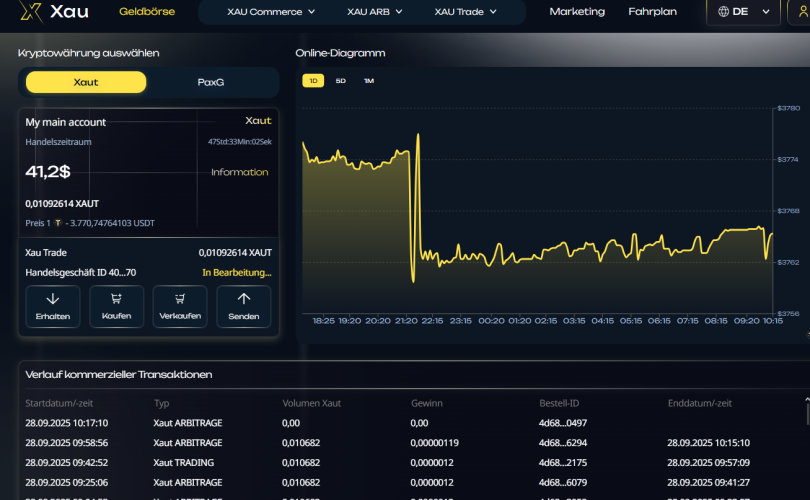 Capitalization of gold assets is available with the functions of XAU Commerce and XAU ARB.