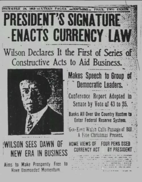 The very day President Woodrow Wilson sold out the country to a few private men (bankers)