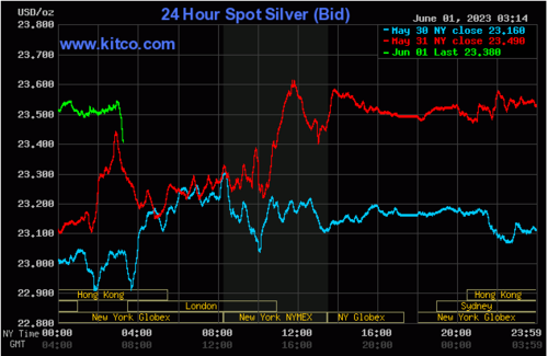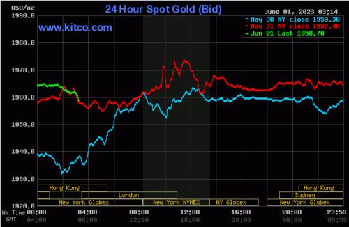 The gold market posted its first monthly loss since February, wrapping May down about $36. As markets eye the crucial Congress vote to lift the debt ceiling, some Federal Reserve speakers are pushing for a "hawkish pause" at the June 13-14 meeting.