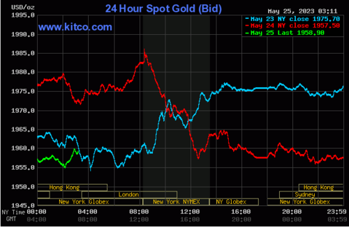 The impasse on US debt ceiling talks has raised the prospect of the world’s largest economy defaulting and kept gold well supported at around $1,975 an ounce.