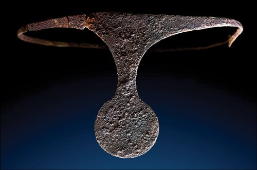 An Early Bronze Age woman was buried in this silver diadem, which would have been worn with the disc on the forehead or nose. Credit: J.A. Soldevilla/ASOME, UAB