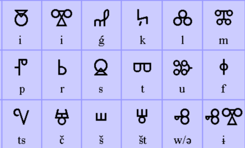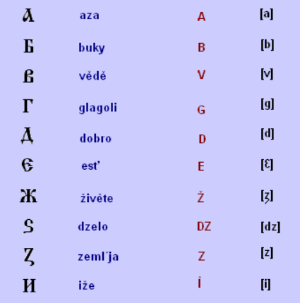 Glagolitic alphabet - is the Slavic font slightly older than the second Slavic font Cyrillic. Both were used for old Slavonic language. Glagolitic - the oldest Slavic Alphabet, was created before 863 by Constantine for missionary purposes in Great Moravia empire. It originated under the influence of Greek and Latin scriptures.However in the 10th century the Slavs switched to Latin and Cyrillic, and the glaholics were no longer used.