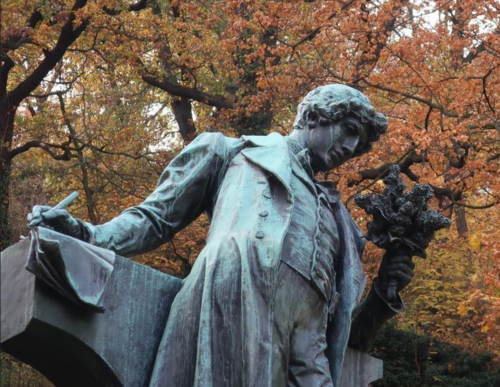 In Praha, capital of Czechia, on the hill Petřín is famous statue of Mácha where lovers come on