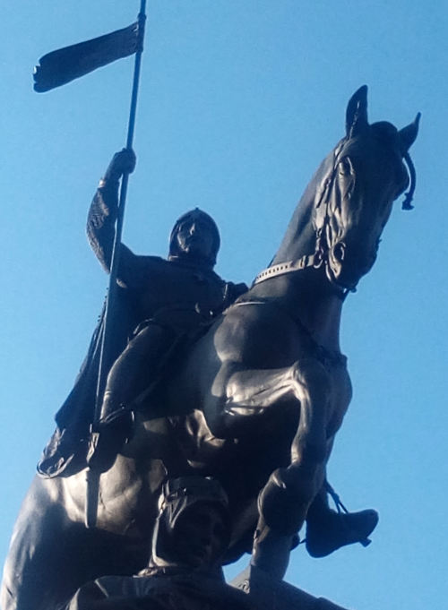 In the heart of Prague, capital of Czech Republic, is the Wenceslas square = Václavské náměstí, with the equestrian statue of Saint Wenceslas, a popular place for meetings and demonstrations.