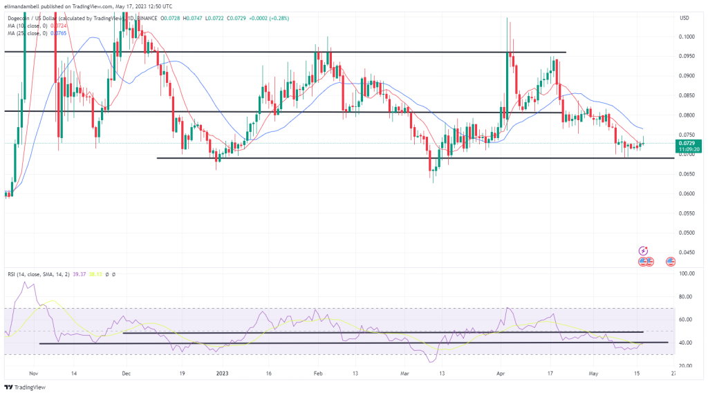 Following a low of $0.07177 on Tuesday, DOGE/USD raced to an intraday high of $0.07422 earlier in the day.