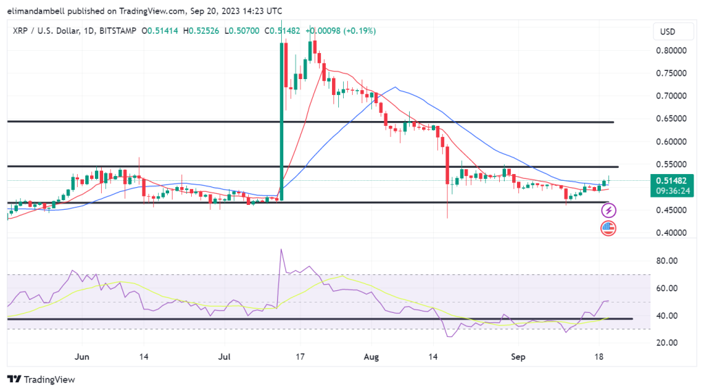 As a result of the surge in price, XRP climbed to its highest point since August 31, when price peaked at $0.5285.